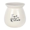 This wax melt burner gift set includes a peachy-pink accented ceramic burner with ‘Relax Mum’ text. Includes a tin of Tropical Island eco soy wax melts in a lovely gift box and makes a perfect gift for Mother’s Day and birthdays.